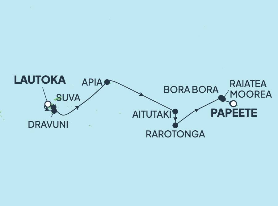 Sail to the tropical paradise of the South Pacific aboard Norwegian Spirit®. Step into the heart of Fiji and explore vibrant markets or lush rainforests in Suva. Snorkel coral reefs or relax on untouched islets in Aitutaki. Dive into crystal-clear lagoons or cruise past Mount Otemanu and witness the unforgettable sunset in Bora Bora.