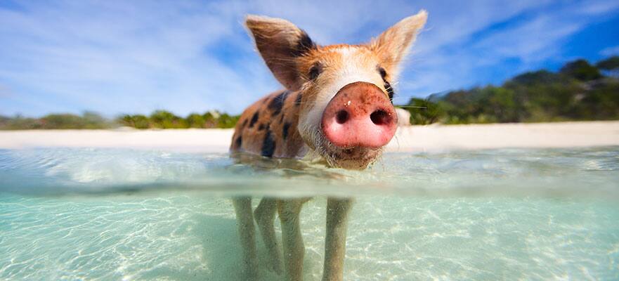 Swim with the pigs! Breathe in the salty air as you ride in a boat across electric-blue waters surrounded by wide-open o...