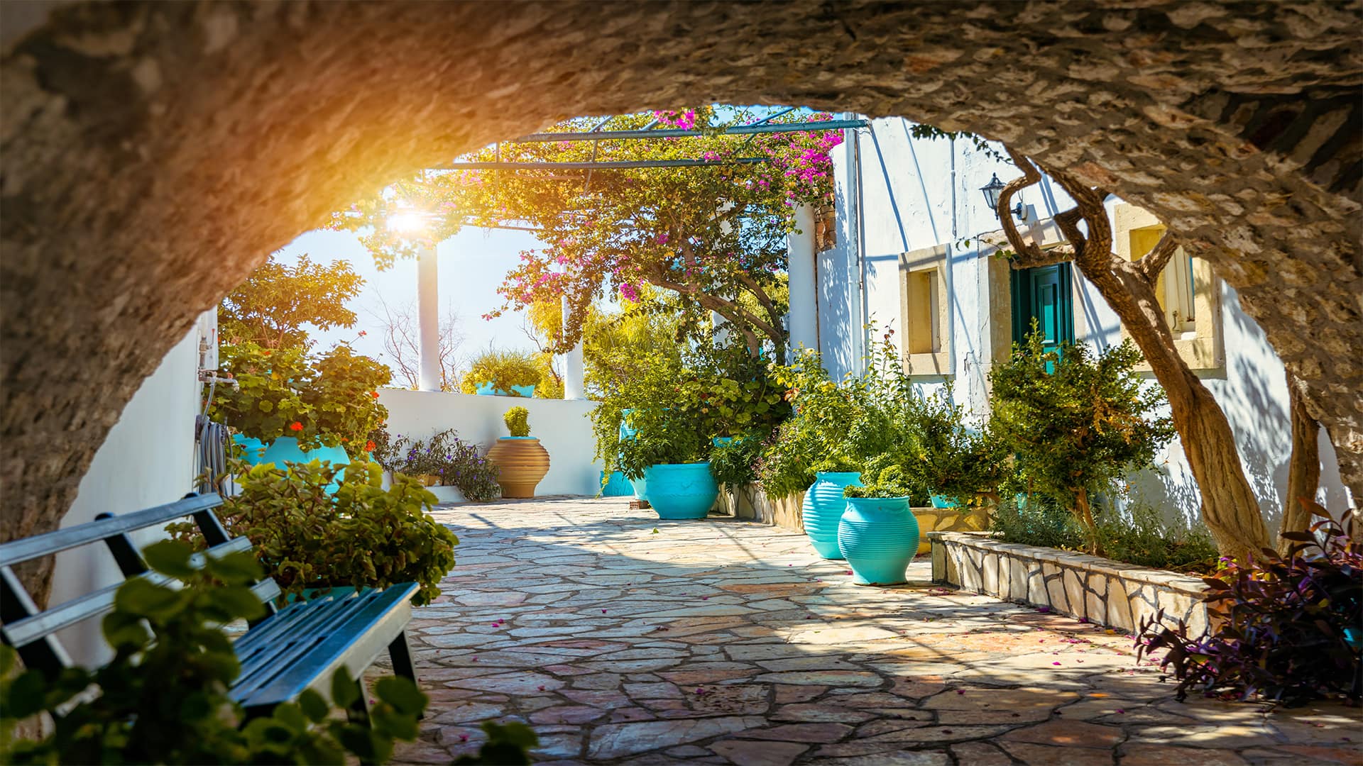 Your air-conditioned motor coach delivers you to Paleokastritsa after an approximately 30-minute journey from the pier. With its rocky promontories cloaked in pine and cypress and its sandy bays embracing turquoise waters, this stunning area is considered the Capri of Greece. Enjoy an up-close look at the unique scenery with an expedition by local boat into the grottos. After an exploration of the sea caves known as Nafiska, Saint Nicolas and the Blue Eye, you will return to the beach for some free time to swim and sunbathe. En route to your ship, your motor coach will climb the hill to the traditional village of Lakones, where you will admire views of the island while sampling Greek appetizers.