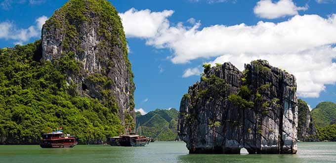 Witness the breathtaking scenery from the decks of an iron boat. Gliding through the gin-clear waters of the bay, absorb one of the most magnificent natural splendors of the Far East. Arriving to the pier in Ha long city, begin your fascinating cruise through Ha Long Bay, one of the world's outstanding natural wonders, resembling a geographic work of art with thousands of limestone islets soaring dramatically from the clear emerald waters. This densely concentrated zone of kharst islands, world famous for its spectacular scenery of grottoes and caves, is a UNESCO World Heritage Site. See tiny islands dotted with rock arches, sheer cliffs, innumerable white sand beaches and peaceful coves. Like sculpted cartoon characters, these limestone islands have fanciful names: Heavenly Gate, Tortoise Rock, Man Head Rock, The Isle of Wonders, Tea Pot Rock and Devil's Face. A stop is made at impressive Thien Cung Cave, with a chance to climb up. Continue to enjoy this relaxing cruise through the stunning landscape.