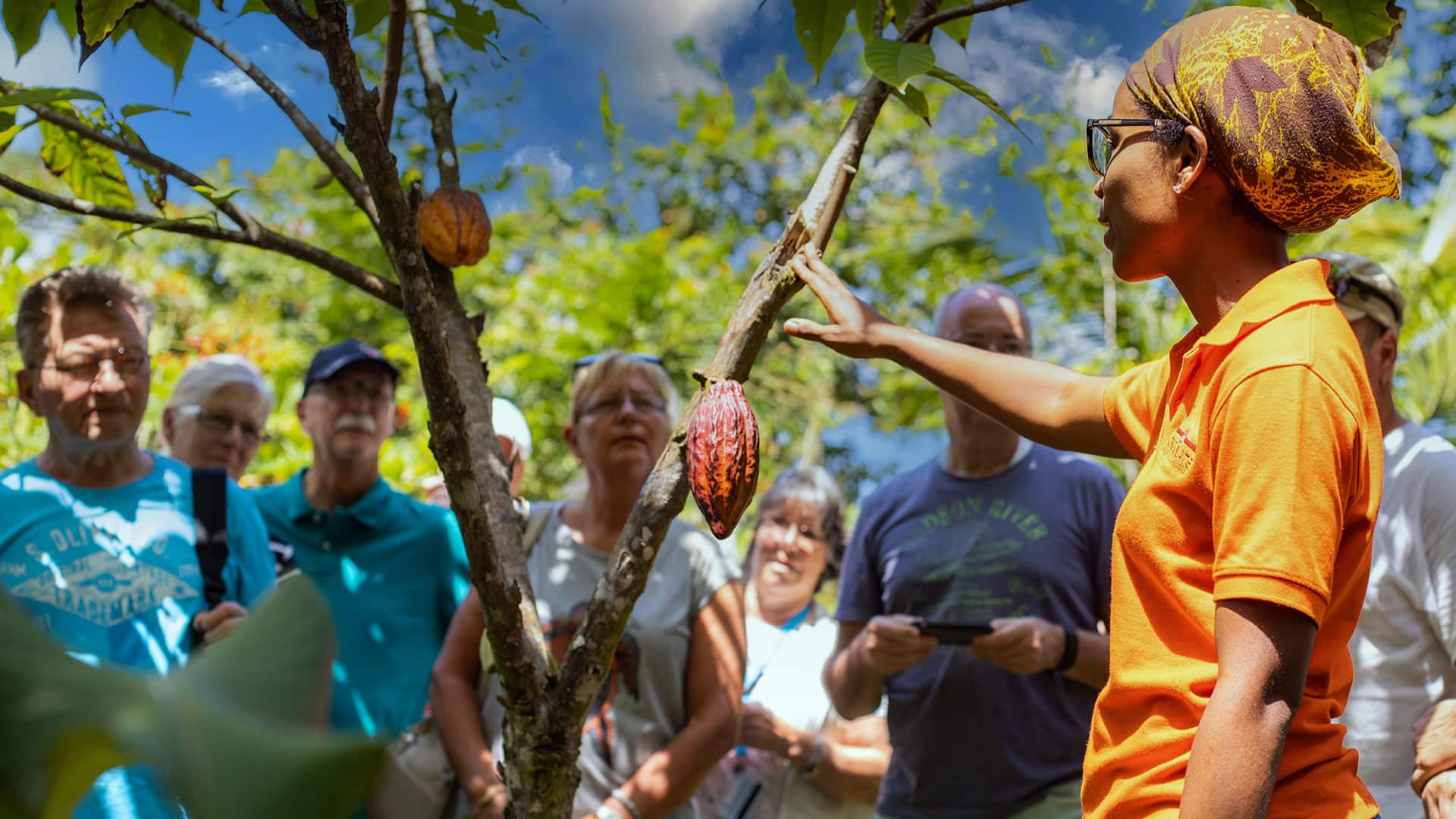 • Explore tropical gardens filled with fruit trees and vibrant flowers.