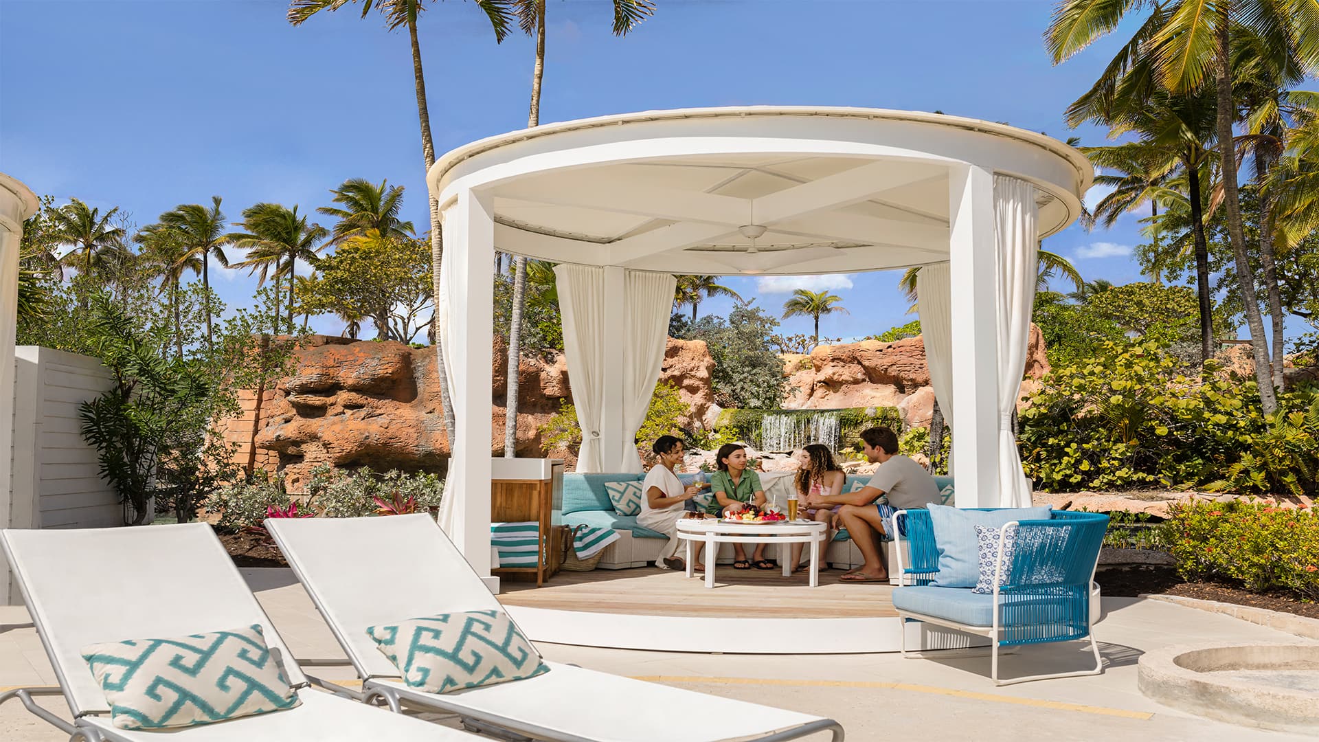 Enjoy poolside luxury and privacy as you take a break from your Aquaventure water park experience. Travel to the Atlantis Resort on Paradise Island (approx. 25 min) and your private pool-side cabana located in the Coral Tower section of the resort. Enjoy the day including: guest service host, food and drink service, for purchase, exclusive poolside access, shaded and sunny seating options, personal safe, fan, refrigerator, electric device plug in ports and private changing area.