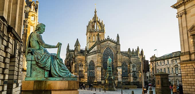 Walk Edinburgh’s glorious Royal Mile, the medieval thoroughfare that stretches from Edinburgh Castle to the Palace of Holyroodhouse. The walk will commence at the castle’s esplanade in the shadow of the imposing fortress, the city’s oldest building. While descending the Royal Mile, you will pass a litany of historical buildings such as Gladstone’s Land, the former townhouse of a wealthy merchant that has been restored to its 17th-century splendor. You will also see Lady Stair’s House, a literary museum dedicated to the works of Sir Walter Scott and Robert Louis Stevenson, both of whom were born in Edinburgh. Upon reaching the end of the street, you will enjoy free time, during which you might explore Holyroodhouse, the British monarch’s official residence in Scotland. In the 18th century, famed novelist Daniel Defoe hailed the Royal Mile as “the largest, longest and finest street in the world.” It remains extraordinary even today.
