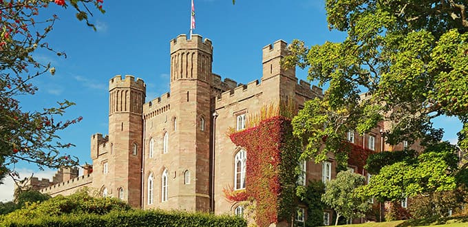 Traveling across the elegant expanse of the Forth Road Bridge, your coach travels in a northerly direction from Leith, heading out across the scenic rolling landscape. Poised above the River Tay, perhaps the greatest salmon river in the world, the Palace overlooks the routes north to the Highlands and east through Strathmore to the coast. The majestic Grampian mountains form a distant backdrop, and across the river stands the city of Perth.